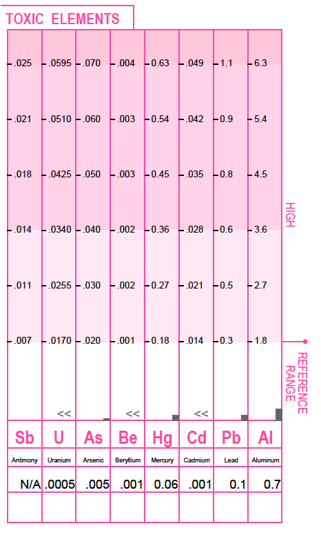 The pre-tests appears to show minimal toxic levels. But what it may often illustrate is a potential hidden toxicity. If there are hidden toxicities it is likely due to dysfunctional or sub-optimal detoxification pathways.